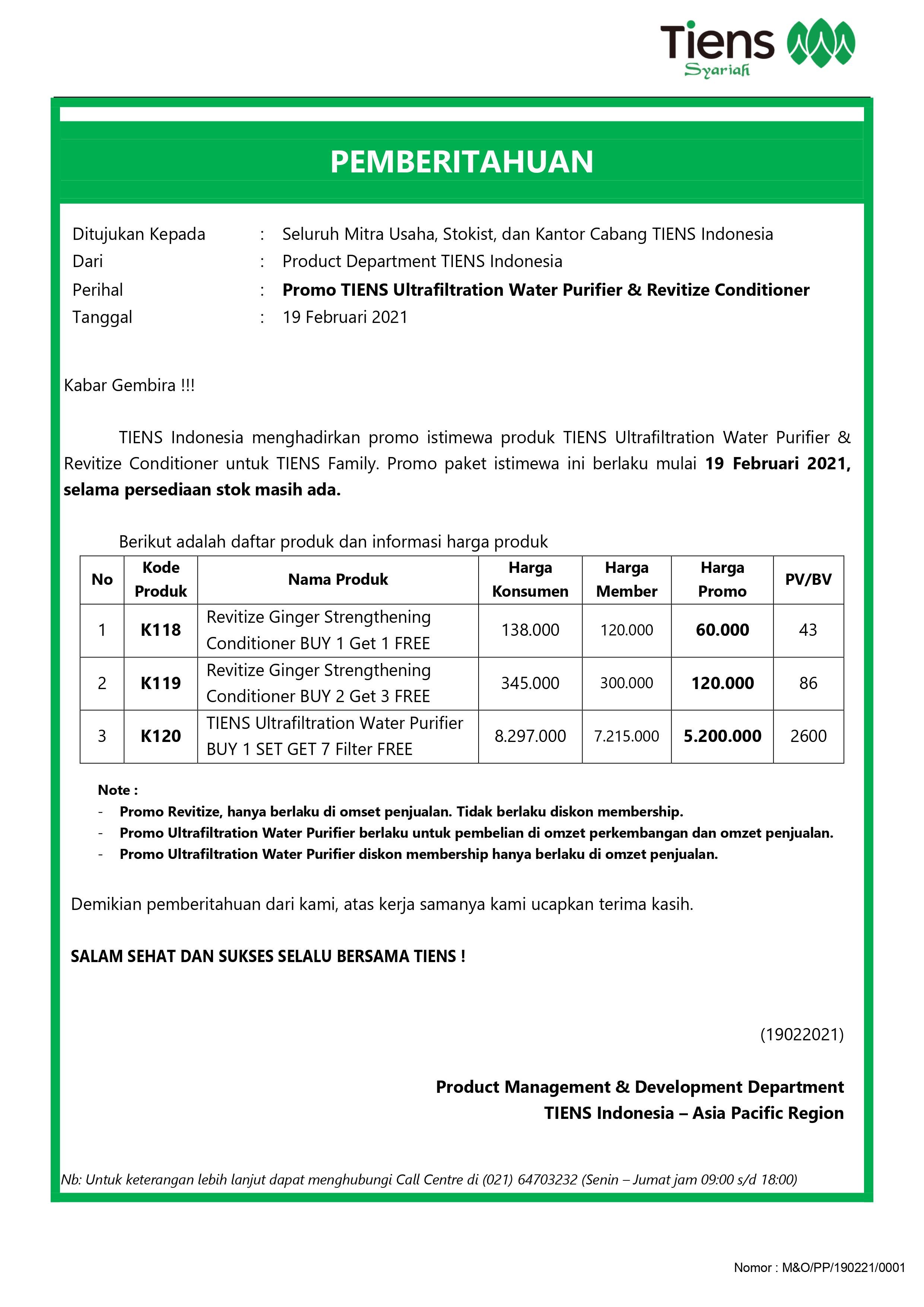 Berlaku mulai 19 Februari 2021, selama persediaan stok masih ada