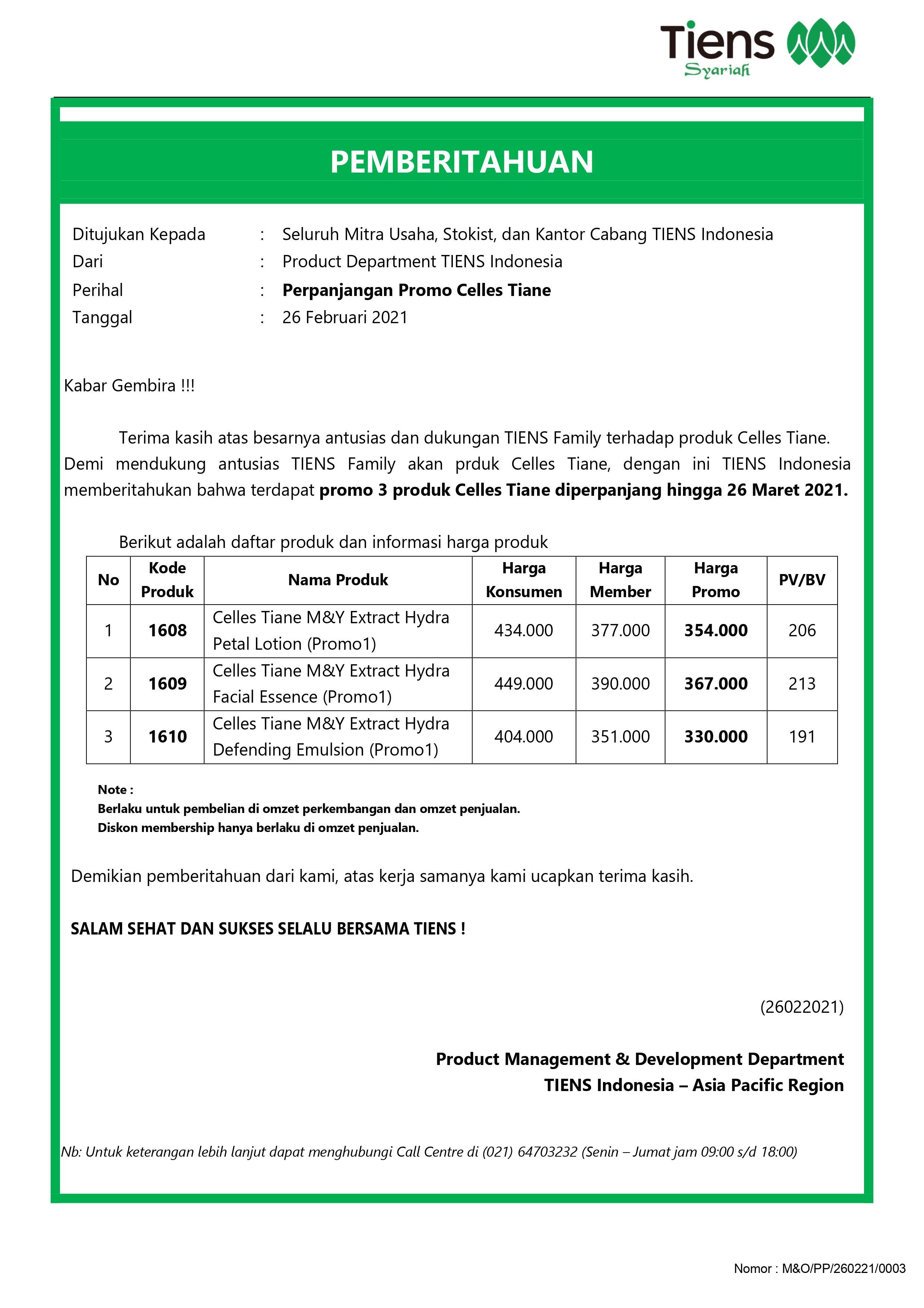 Promo 3 produk Celles Tiane diperpanjang hingga 26 Maret 2021.